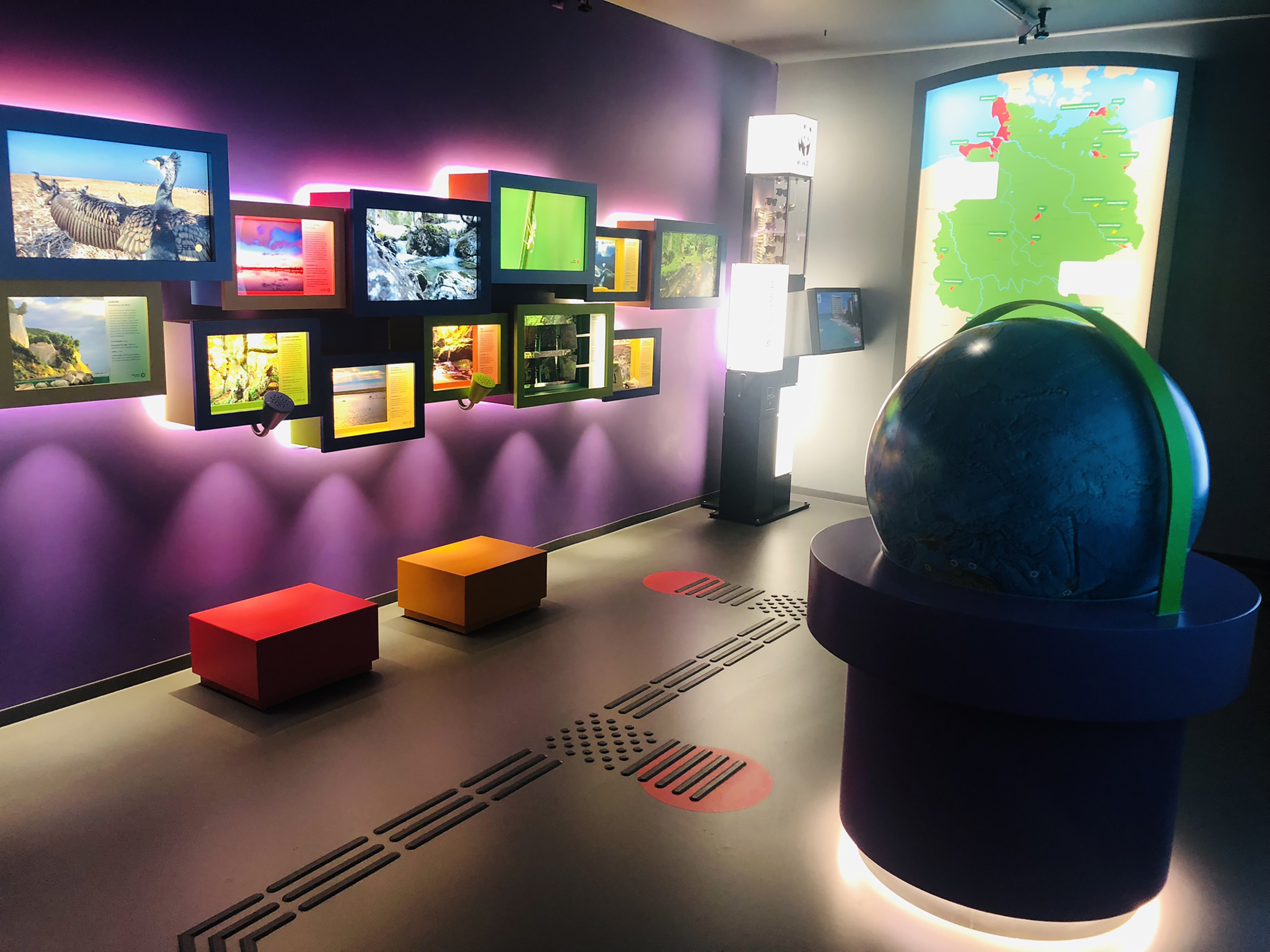 Auf drei Etagen streifen die Besucher*innen durch die akustisch inszenierten Räume und werden dabei spielerisch in die Geheimnisse der Kreidelandschaft eingeweiht. Als besonderes Highlight gibt es für jeden Zeitreisenden die passende Führung per Mediaguide - auch für die kleinsten Entdecker*innen! Während die Großen zwischen Romantik, Neugier und Abenteuer wählen können, werden die Kleinen von Maus Mimi und Rabe Krax mit lustigen Geschichten durch die Erlebnis-Ausstellung begleitet. Die Besucher*innen begeben sich so auf eine abenteuerliche Zeitreise durch den Nationalpark Jasmund: Sie können Eiszeitgletscher berühren und unterirdische Welten entdecken.