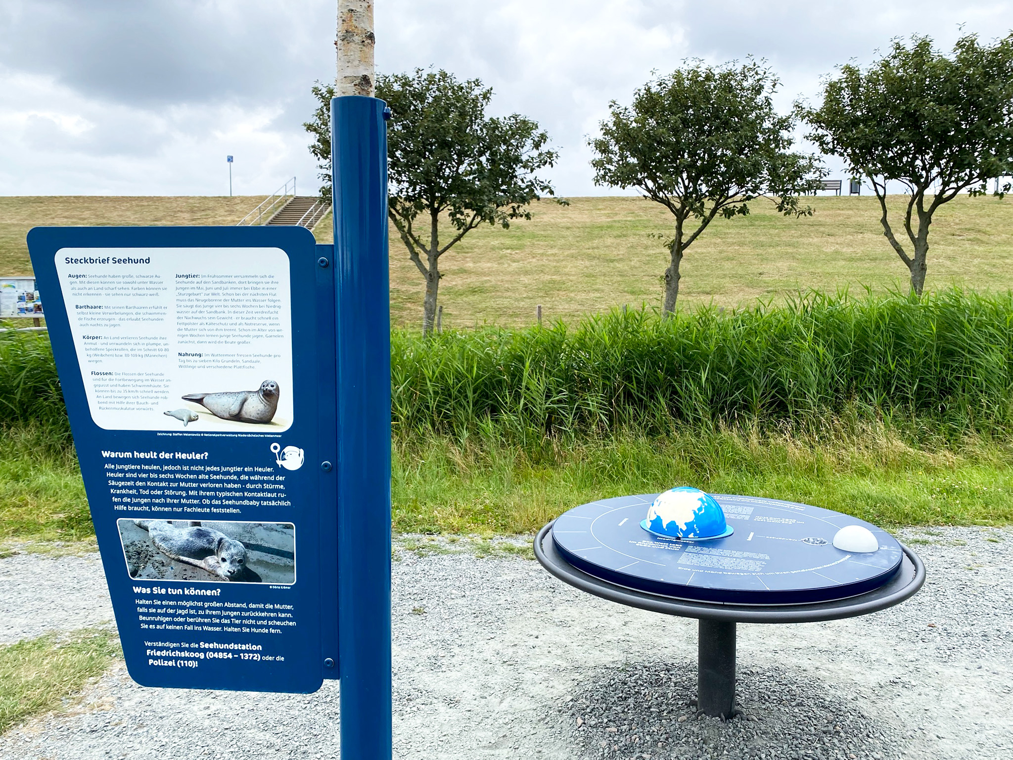Infotafeln und Exponate zum Anfassen vermitteln das Wissen über die kleinen Naturwunder rund um das Wattenmeer. Ein interaktives Modell veranschaulicht beispielsweise das Phänomen der Ebbe und Flut, ein Rotlichtfilter weist auf versteckte Lebewesen in der Salzwiese hin und ein Rätselpfad entlang der Nordseestraße ist vor allem für kleine Entdecker ein Highlight. Der Rundwanderweg leistet inhaltlich damit einen wichtigen Beitrag zu den Themen Natur und Umwelt.
