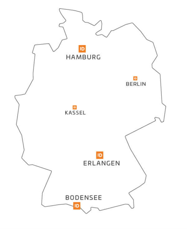 Unser Stammsitz ist in Erlangen, eine Filiale in Hamburg. Wir haben ein Büro am Bodensee und Mitarbeiter*innen in Kassel und Berlin. Wir arbeiten in flexiblen Projektteams im gesamten Bundesgebiet und im benachbarten Ausland.